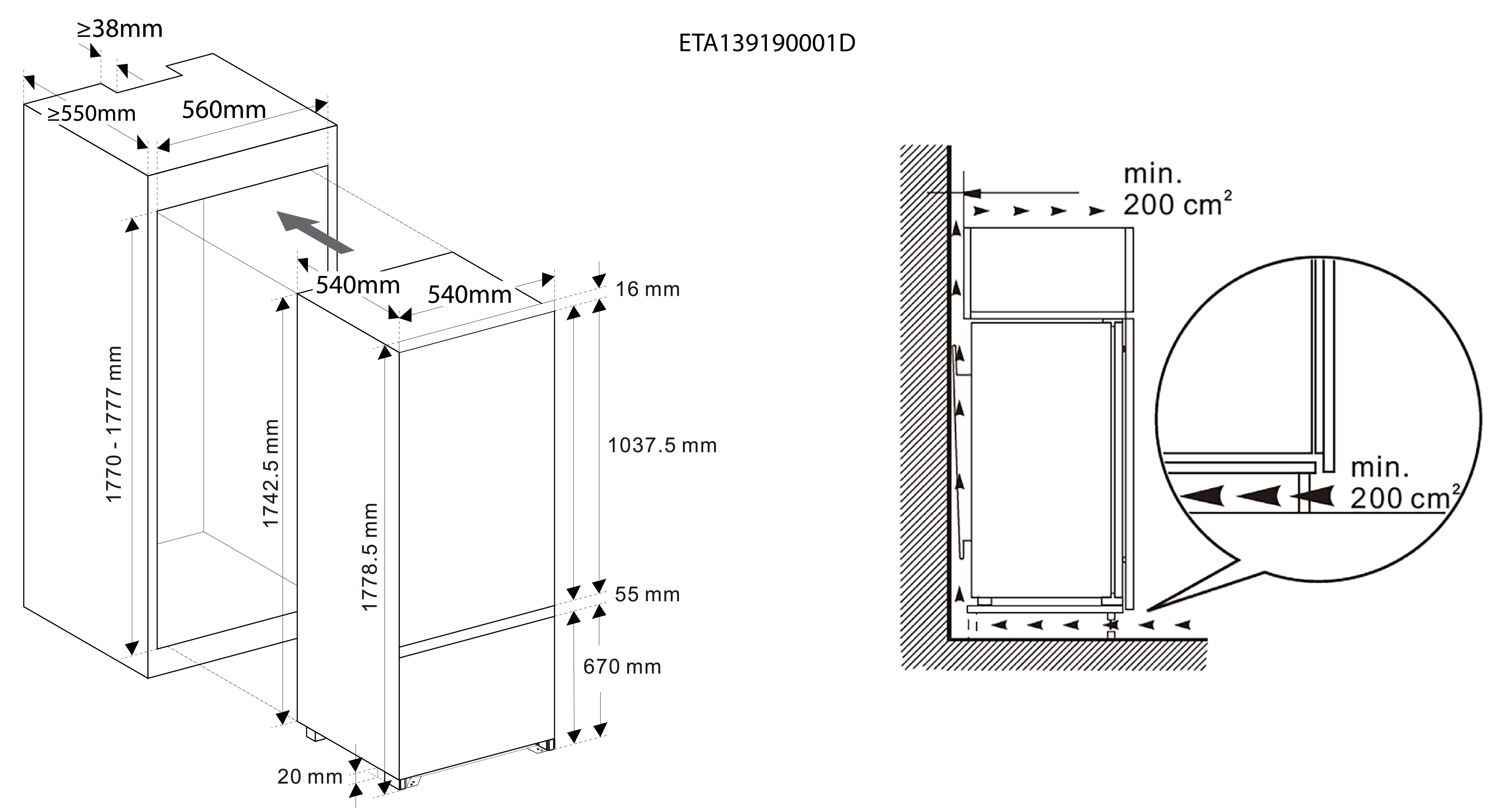 Kombinovaná chladnička v bielej farbe s možnosťou zmeny otvárania dverí, ktorá je zabudovaná do korpusu skrinky. Interiér je osvetlený moderným LED svetlom, ktoré nielenže usporí energiu, ale má predovšetkým výbornú svietivosť.