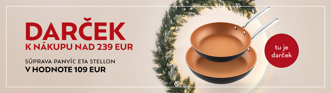 Máme pre vás prekvapenie, do Vianoc rozdávame darčeky! Ku každému nákupu nad 239 € vám darujeme súpravu panvíc v hodnote 109 €. A ako darček získať? Jednoducho, stačí len nakúpiť a ku každému nákupu nad 239 € darček obdržíte!