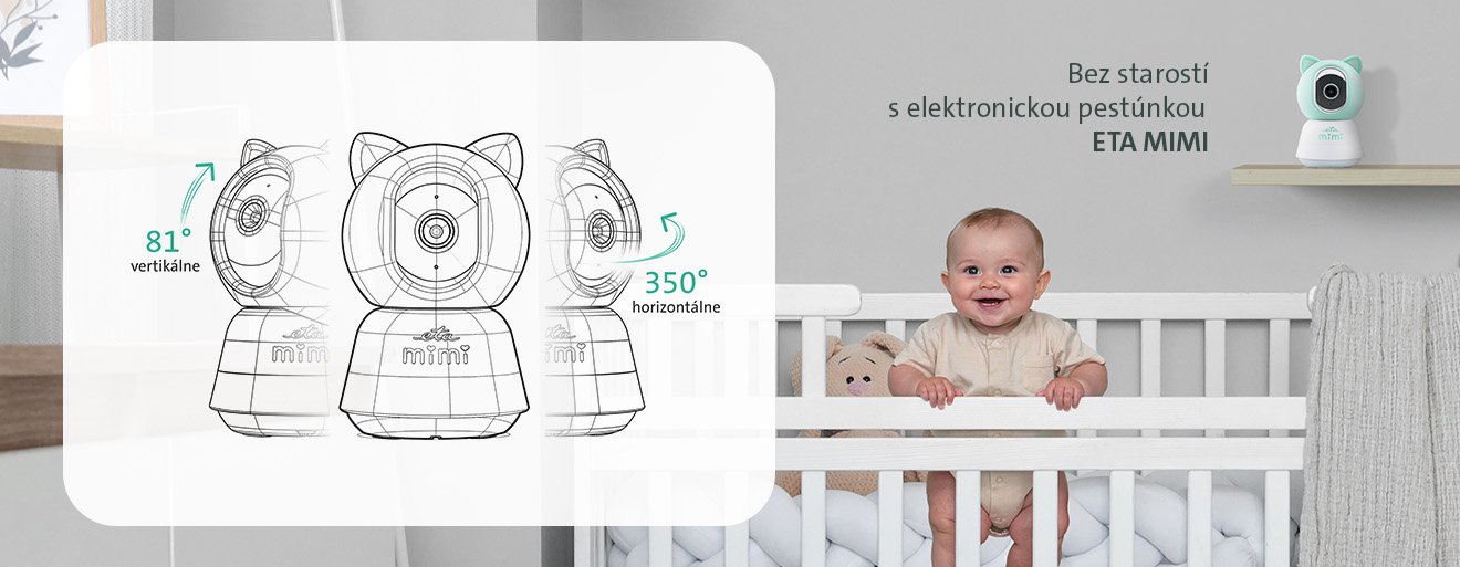 Detská elektronická pestúnka ETA MIMI vám umožní mať svoje dieťa neustále pod kontrolou. Stačí pripojenie na internet a v mobilnej aplikácii okamžite vidíte, čo sa deje v detskej izbe. Pestúnka automaticky rozpozná plač, pohyb alebo zmenu teploty a vlhkosti. Na zmeny vás ihneď upozorní, takže môžete včas a s istotou reagovať. Poskytuje vám tak väčšiu voľnosť pohybu po dome a zároveň ubezpečenie, že je vaše bábätko v poriadku.