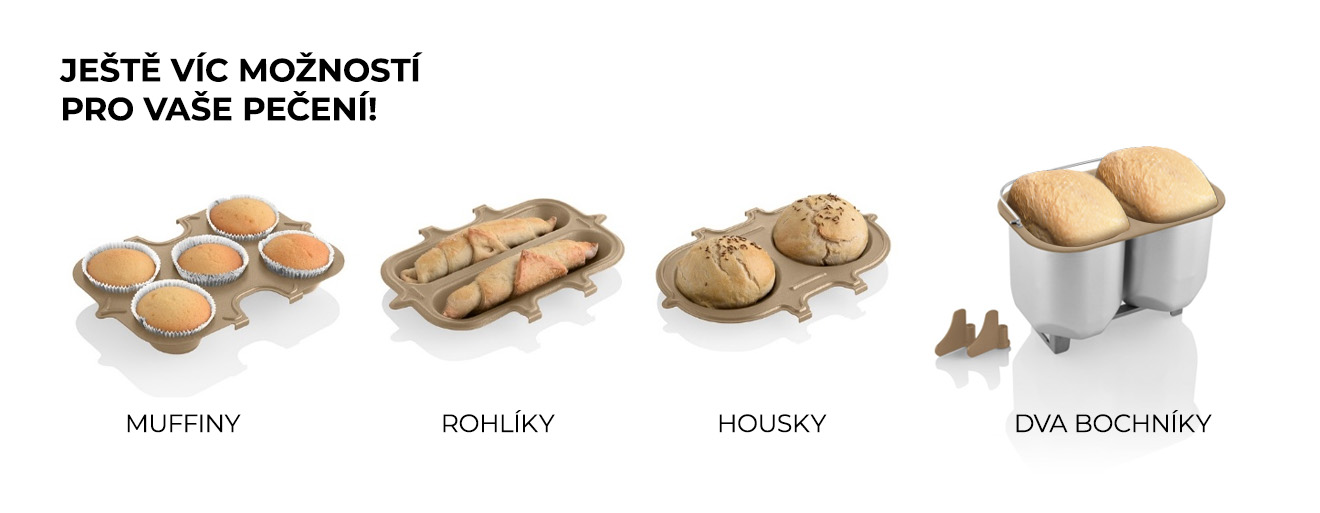 - Programy pro zhotovení muffinů, bulek a rohlíků při použití dokoupitelného příslušenství