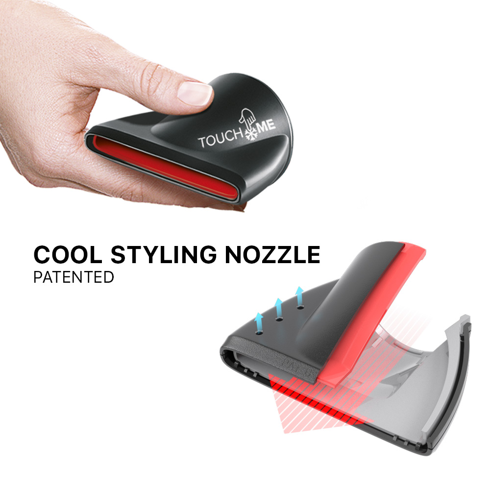Vybavený dvomi ultra tenkými profesionálnymi koncovkami vrátane TOUCH ME studenej koncovky (7,5 x 0,6 cm) pre presný styling a difuzéru, ktorý dodá vlasom objem a ľahkosť. Vyberateľný kovový filter uľahčuje čistenie a predlžuje životnosť prístroja.