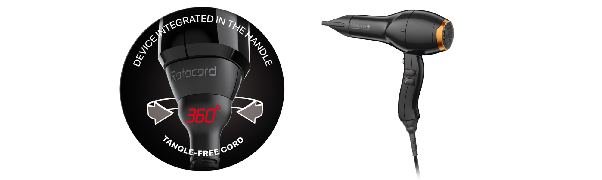 Vďaka patentovanej technológii ROTOCORD sa napájací kábel môže voľne otáčať o 360°, čo eliminuje zamotávanie a uzly, ktoré často komplikujú styling. Tento inovatívny otočný prvok je teraz strategicky integrovaný do rukoväte, takže fén môžete pohodlne otáčať podľa potreby bez toho, aby sa kábel krútil. Jednoduchšia manipulácia znamená nielen komfortnejšie použitie, ale tiež dlhšiu životnosť kábla a vyššiu udržateľnosť, čo robí z ROTOCORD technológie skutočnú investíciu do kvalitnej starostlivosti o vlasy.