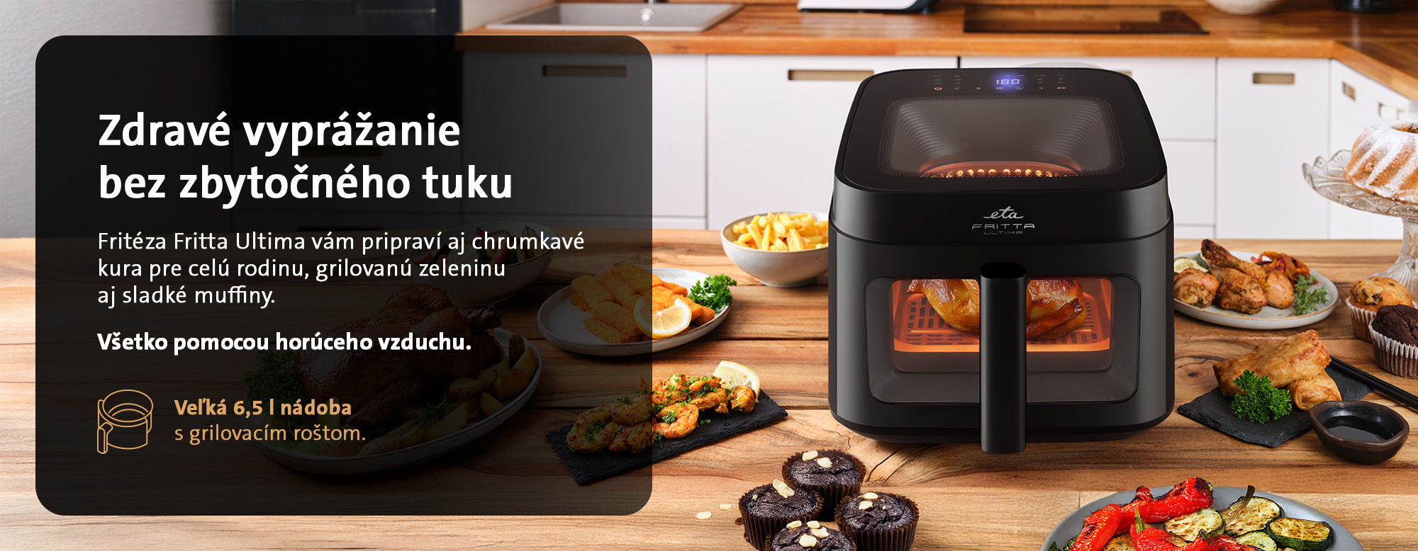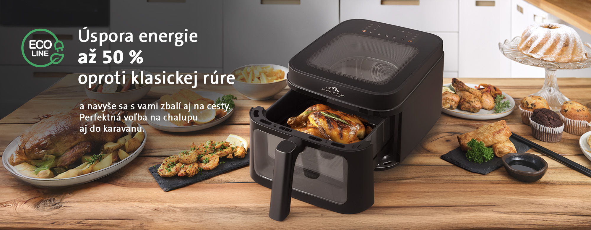 ETA Fritta Ultima bez námahy nahradí klasickú teplovzdušnú rúru – a to s až o 55 % nižšou spotrebou energie. Ideálna voľba pre všetkých, ktorí chcú šetriť bez kompromisov v chuti. Fritézu navyše nie je potrebné predhrievať, takže okrem elektriny ušetríte aj čas.