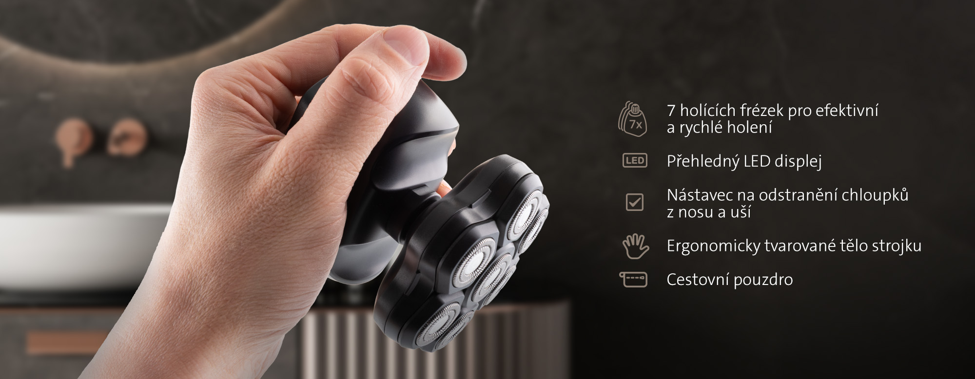 Hledáte spolehlivého pomocníka pro pravidelnou úpravu vašeho krátkého účesu a hlavy? Moderní holicí strojek na hlavu ETA Jason vám nabídne pohodlí, výkon a jednoduchou údržbu v jednom. Byl navržen tak, aby splňoval potřeby moderního muže hledajícího rychlost, komfort a precizní výsledek. Tělo strojku je ergonomicky tvarované, skvěle padne do dlaně a zajišťuje pohodlný a jistý úchop i při delším používání. Díky speciální holicí hlavě vybavené 7 frézkami snadno sleduje obrysy hlavy a postará se o rychlé a precizní oholení bez nepříjemného tahání. Flexibilní konstrukce navíc zajišťuje, že se hlavice vždy přizpůsobí vašim individuálním potřebám.