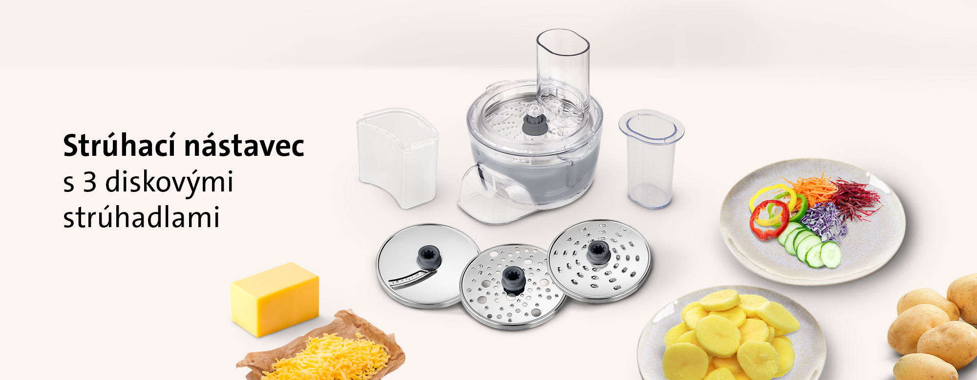 Nadstavec na strúhanie s 3 diskovými strúhadlami a prevodovkou pre optimálne otáčky vám uľahčí strúhanie zeleniny, ovocia, zemiakov aj syrov a ďalších potravín. S týmto nadstavcom ušetríte čas aj námahu a ku klasickému strúhadlu sa nebudete chcieť vrátiť.