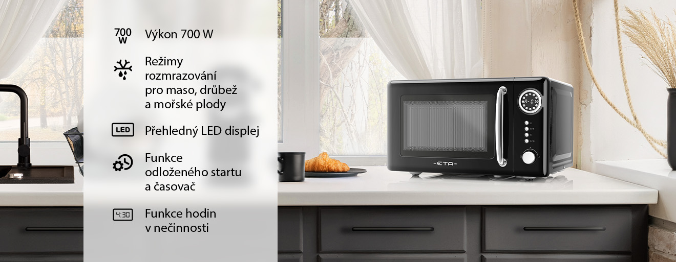 Na magnetron mikrovlnné trouby ETA Storio můžete získat prodlouženou záruku na 5 let, kterou si bezplatně registrujte ZDE.