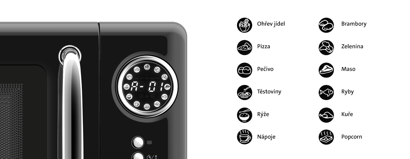 Elegantní a výkonná mikrovlnná trouba ETA Storio se stane nepostradatelným pomocníkem ve vaší kuchyni. Díky objemu 20 litrů a výkonu 700 W zvládne rychle a jednoduše ohřát, uvařit či rozmrazit jakýkoli pokrm. K dispozici máte 12 automatických programů, pomocí kterých zvládnete přípravu široké škály pokrmů. Pro rychlé a efektivní rozmrazování potravin můžete využít 3 specializované režimy – pro maso, drůbež a mořské plody. Spojení stylového designu a praktických funkcí dělá z této mikrovlnky ideální volbu pro každou moderní domácnost.