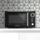 Ovládání mikrovlnné trouby ETA Storio je intuitivní a pohodlné díky přehlednému LED displeji a otočnému ovládání pro snadné nastavení programu. Displej v době nečinnosti poslouží jako praktické hodiny, k dispozici je také časovač až na 60 minut a funkce odloženého startu. O dokončení programu vás informuje zvukový signál, a díky osvětlenému vnitřnímu prostoru máte průběh přípravy jídla stále pod kontrolou. Otočný talíř s průměrem 24,5 cm zajistí rovnoměrné ohřátí pokrmů, takže si každé jídlo vychutnáte přesně tak, jak má být.