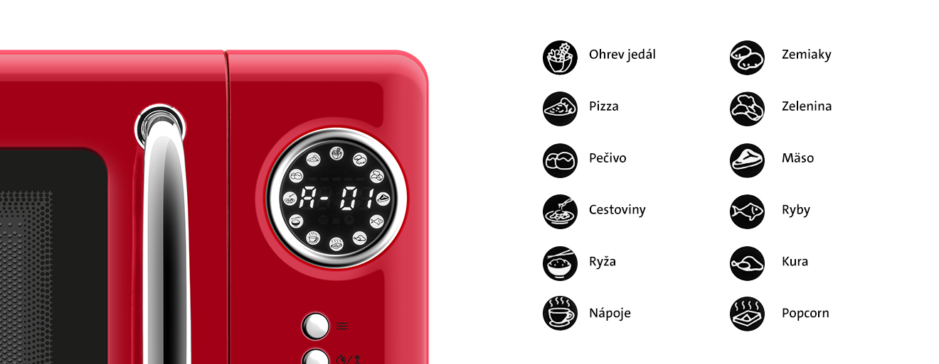 Ovládanie mikrovlnnej rúry ETA Storio je intuitívne a pohodlné vďaka prehľadnému LED displeju a otočnému ovládaniu pre jednoduché nastavenie programu. Displej v čase nečinnosti poslúži ako praktické hodiny, k dispozícii je tiež časovač až na 60 minút a funkcia odloženého štartu. O dokončení programu vás informuje zvukový signál a vďaka osvetlenému vnútornému priestoru máte priebeh prípravy jedla stále pod kontrolou. Otočný tanier s priemerom 24,5 cm zabezpečí rovnomerné zohrievanie pokrmov, takže si každé jedlo vychutnáte presne tak, ako má byť.