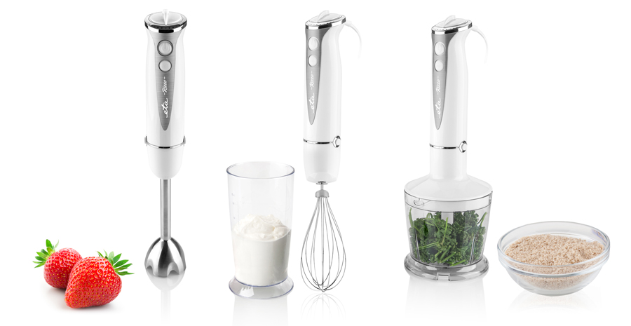 Tyčová časť je odnímateľná. Vymeniť ju môžete za šľahací nadstavec pre vyšľahanie smotany, bielkov alebo domácej majonézy. Ku šľahaču je ešte pracovná nádoba o objeme 600 ml. Súčasťou je aj sekáčik so srpovitým nerezovým nožom o objeme 500 ml pre sekanie byliniek, orieškov a zeleniny.