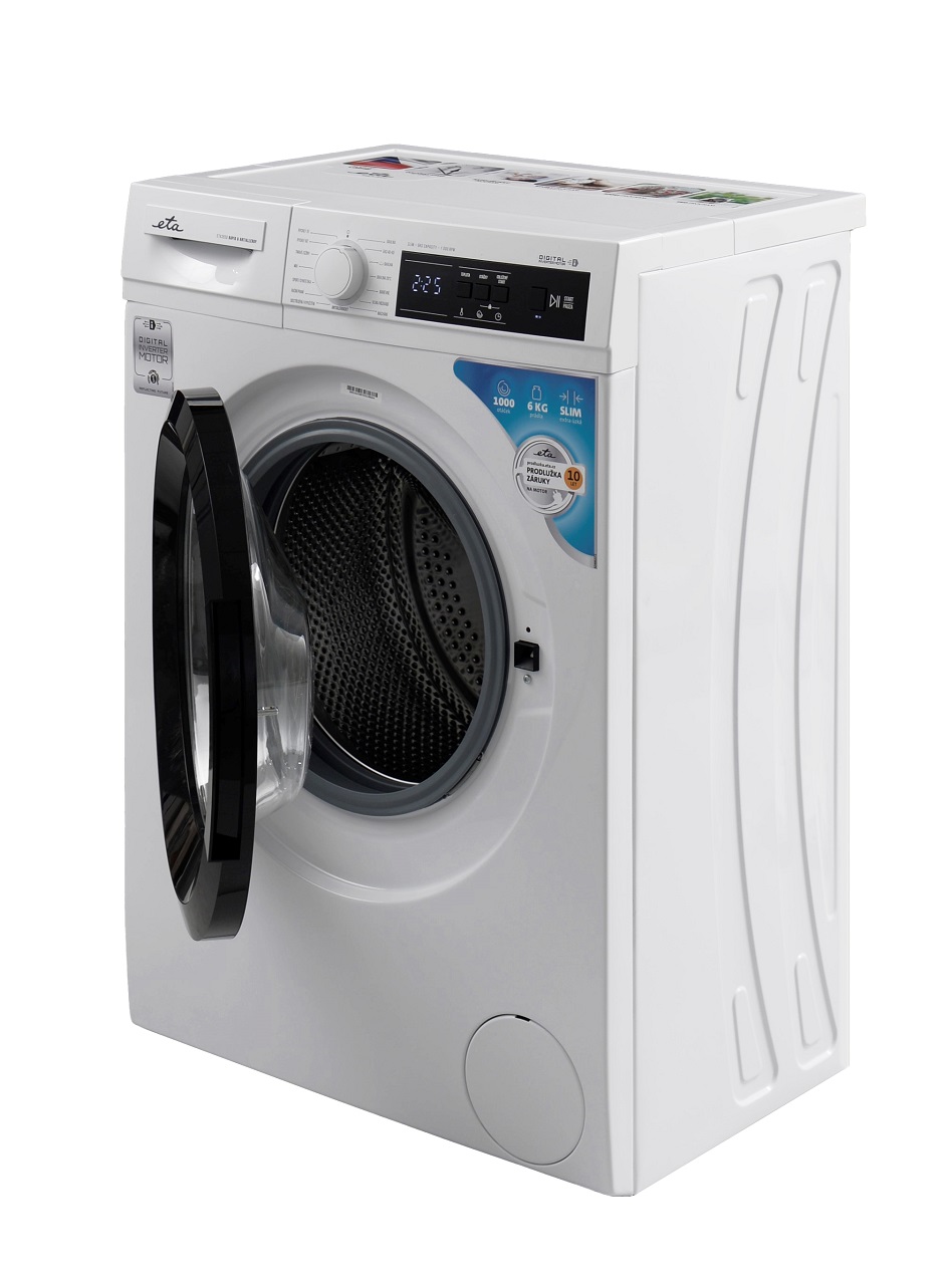 Úzka práčka ETA so šírkou 60 cm a hĺbkou 42 cm perfektne padne do menších kúpeľní a bytov, kde sa počíta každý centimeter. Aj napriek svojej kompaktnej veľkosti pojme až 6 kg bielizne, takže bez problémov zvládne vyprať bielizeň pre jednotlivca, páry aj menšie rodiny. Práčka je navyše vybavená invertorovým motorom, ktorý zaisťuje tichšiu a úspornejšiu prevádzku.
