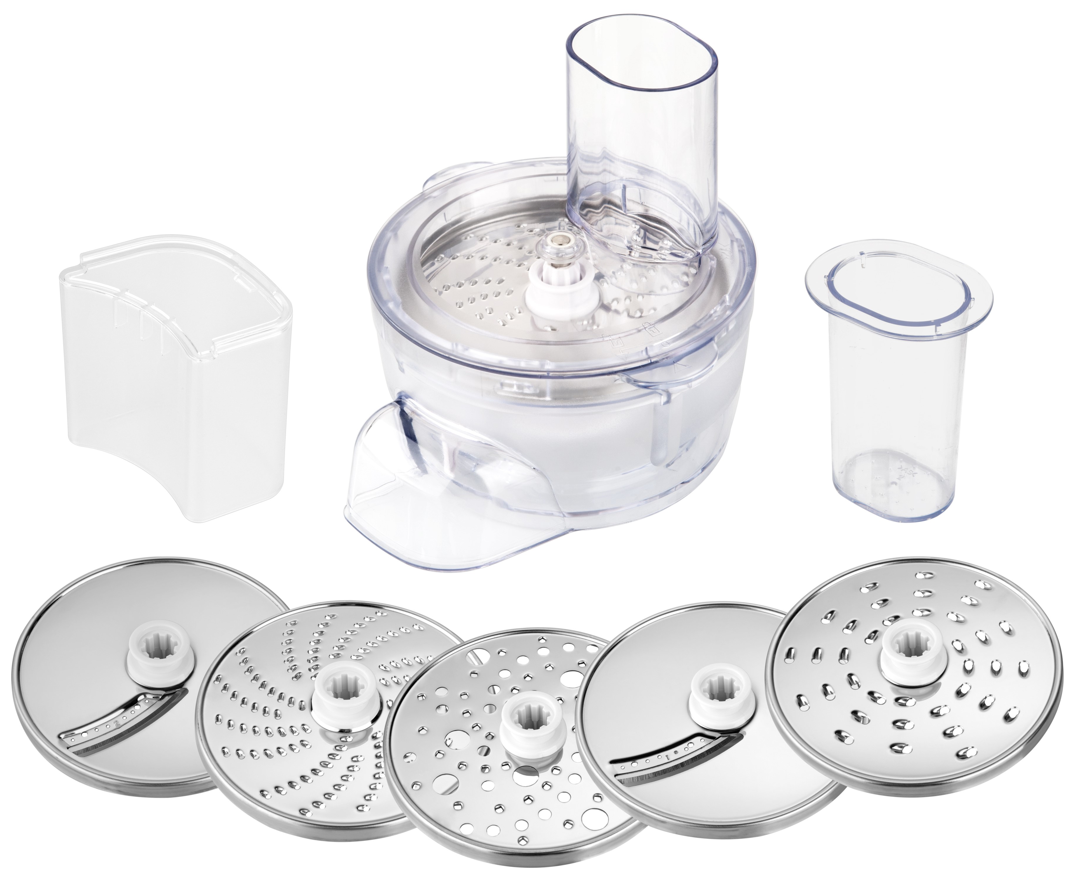 Nadstavec obsahuje päť celonerezových diskových strúhadiel pre tenké i hrubé krájanie, jemné a hrubé strúhanie a trhací nástavec. Počas niekoľkých málo minút budete mať nastrúhané zemiaky na zemiakové placky či zemiačiky alebo nakrúhanú kapustu.