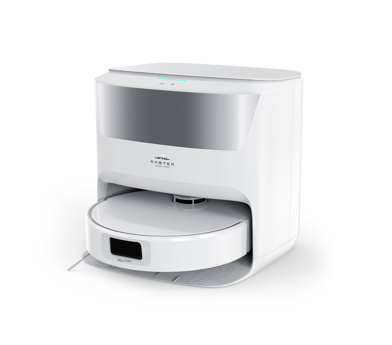 Robotický vysavač ETA Master Aqua Pro s rotačními mopy spojuje 4 funkce v 1 a přináší špičkový úklid podlah bez námahy. Inovativní systém mopování nabízí automatické praní a sušení mopů horkým vzduchem (až 45 °C) i automatické dávkování čisticího prostředku. Speciální konstrukce kartáčů minimalizuje namotávání vlasů a chlupů, zatímco možnost sáčkového i bezsáčkového provozu přináší cennou flexibilitu. O přesný pohyb se stará laserová navigace s 3D skenováním a bezdotykovým vyhýbáním i drobným předmětům. Ultrasonický senzor umožňuje funkci Autoboost a automatické zvedání mopů na kobercích. Extrémní sací výkon až 8000 Pa, výkonná Li-Ion baterie 5200 mAh s výdrží až 240 minut a hlučnost nepřesahující 75 dB řadí tento model mezi nejvýkonnější, a přitom velmi tichý vysavač ve své třídě. Vysavač můžete pohodlně ovládat přes aplikaci ETA SMART (v CZ, SK, DE, ENG, HU). Vysavač má hlasový doprovod v češtině, slovenštině a angličtině, ovládání je tak pádem maximálně intuitivní.