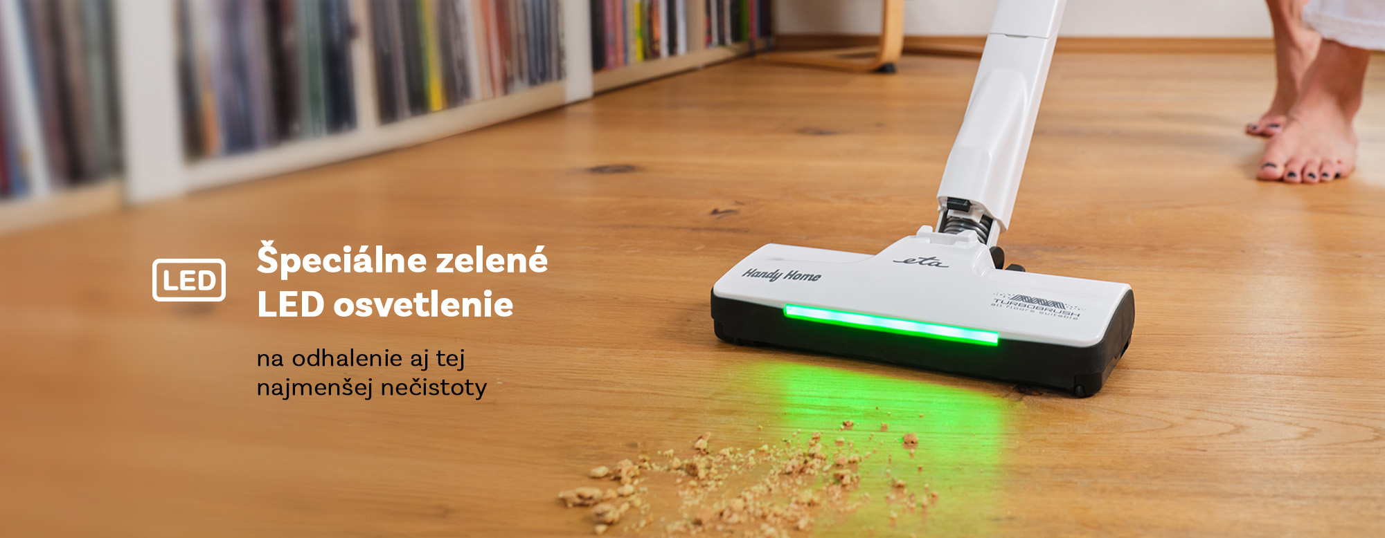 * LED diódy v zelenej farbe pre osvetlenie vysávanej plochy na podlahovej hubici