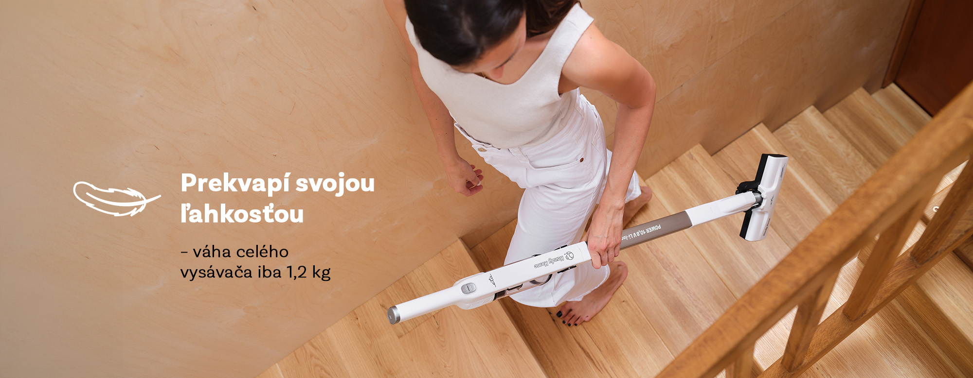 * Veľmi nízka hmotnosť - ručný vysávač 0,5 kg / tyčový vysávač 1,2 kg