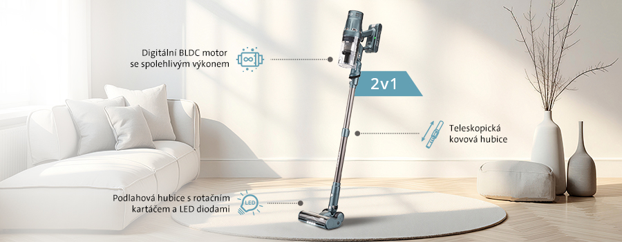Teleskopickou kovovou trubici si snadno nastavíte na ideální délku od 47 do 71,5 cm, takže se při úklidu nebudete muset zbytečně ohýbat. Ergonomická rukojeť zajistí pohodlné držení i při delším používání, zatímco samostojící podlahová hubice s funkcí proti namotávání vlasů a chlupů udržuje kartáč čistý a připravený k dalšímu použití. Praktické LED diody na hubici spolehlivě posvítí i do tmavých koutů a odhalí každé smítko. Díky promyšlené konstrukci, snadné údržbě a možnosti použití jako ručního vysavače se stane neocenitelným pomocníkem pro každodenní úklid.
