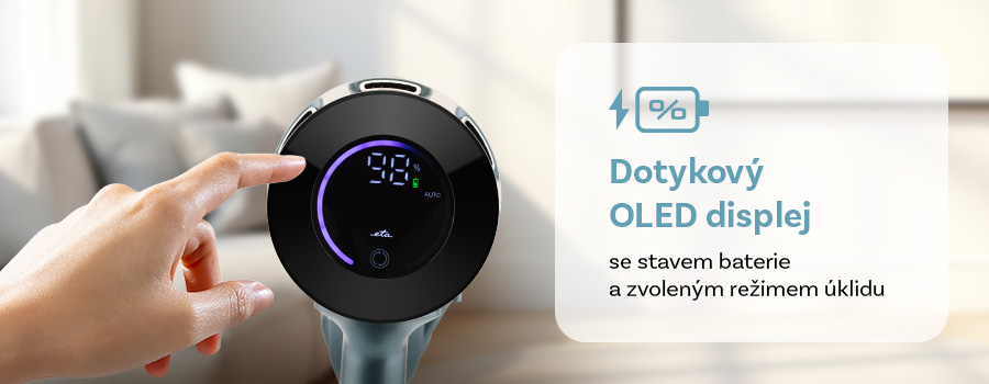 Na přehledném dotykovém OLED displeji vždy uvidíte stav baterie i zvolený režim úklidu. Jeho ovládání je intuitivní, takže vysavač zvládne pohodlně používat každý člen domácnosti. Po skončení úklidu pak stačí zmáčknout jediné tlačítko pro bezkontaktní vysypání nádoby o objemu 0,5 litru.