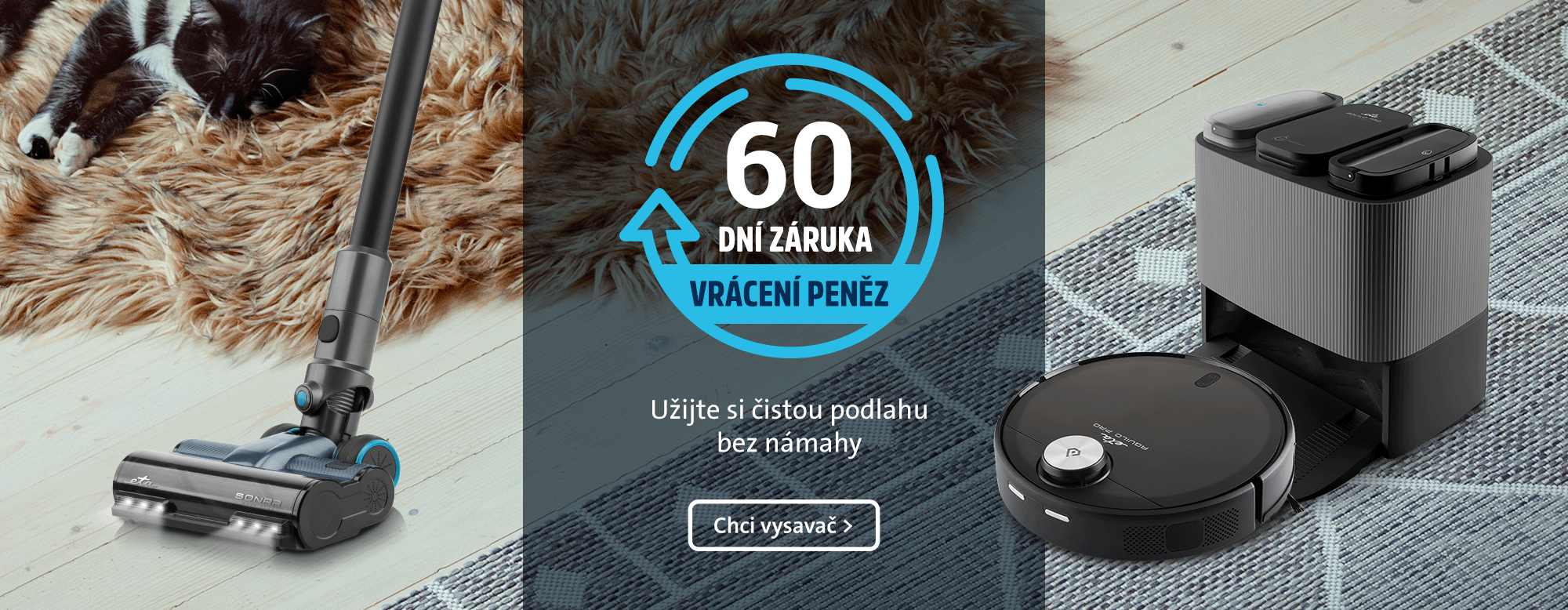 Stále si nejste jistí, jestli vám to bude s vysavačem klapat? Nevadí! Využijte možnost vyzkoušet si vysavač až na 60 dní a pokud nesplní vaše očekávaní, můžete nám jej jednoduše vrátit. Kompletní podmínky akce najdete ZDE.