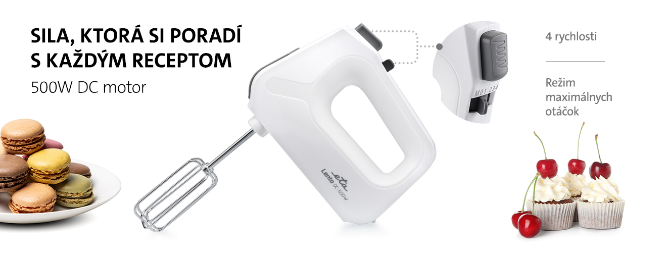 Ručný šľahač ETA Lento II je spoľahlivý pomocník na každodenné varenie aj pečenie. Bez námahy mixuje, hnetie aj šľahá a spracuje všetko od ľahkých krémov až po hutné cestá. Výkonný 500 W DC motor s dlhou životnosťou si poradí s každou surovinou. Disponuje 4 rýchlosťami na presné nastavenie výkonu podľa aktuálnej potreby a tlačidlom „M“, ktoré okamžite aktivuje maximálne otáčky pre rýchly a intenzívny výkon. Súčasťou balenia sú 2 dlhé šľahacie metly a 2 hnetacie háky.