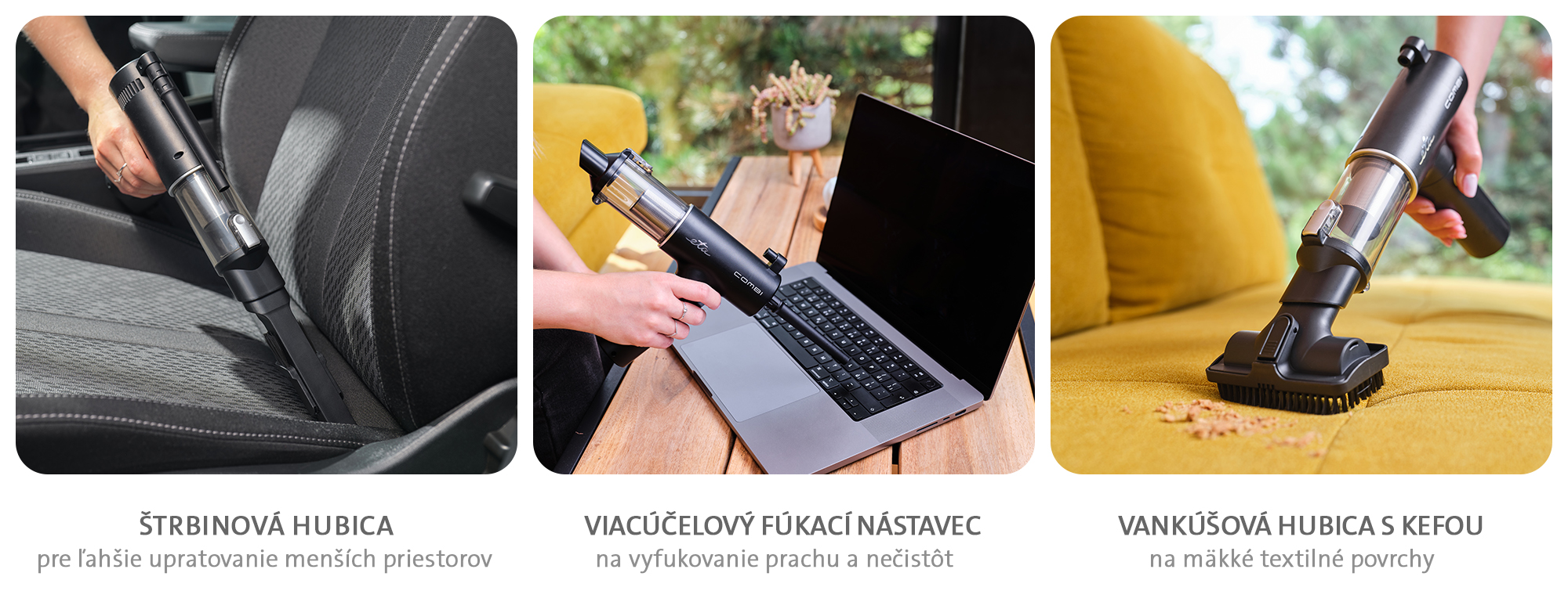 V balení nájdete všetko, čo si moderná domácnosť môže priať – od nadstavcov na čalúnenie, cez úzku štrbinovú hubicu na ťažko dostupné miesta, až po špecializované koncovky na nafukovanie a vákuovanie. Vysávač ETA Combi vás poteší aj moderným USB-C nabíjaním.