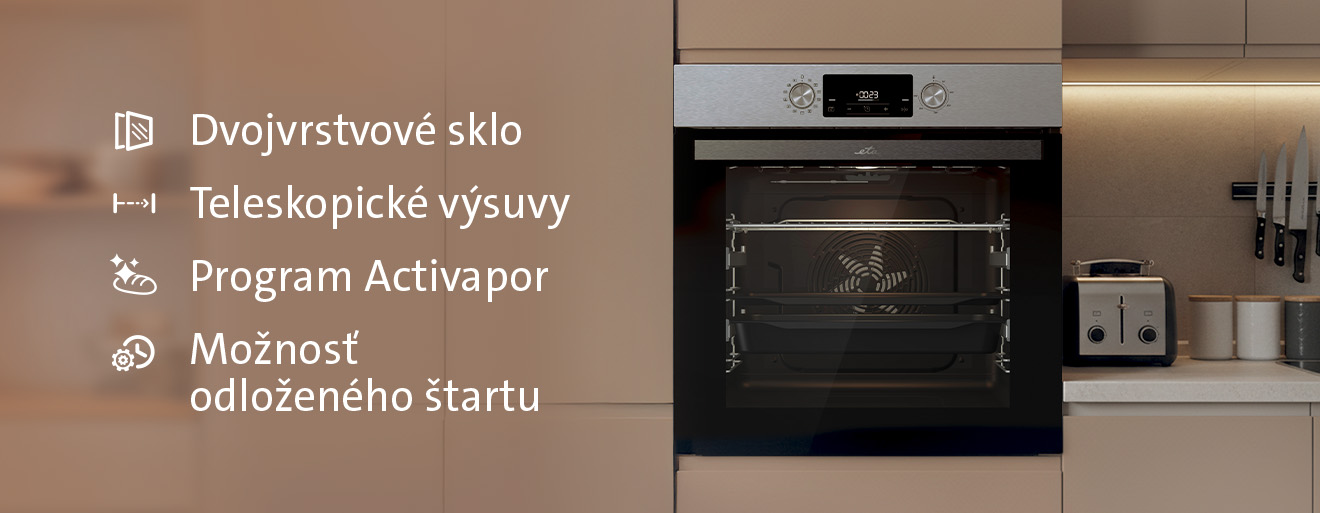 Vstavaná rúra ETA ponúka mimoriadne veľký objem 77 litrov, takže bez problémov zvládne prípravu väčšieho množstva jedla pre celú rodinu. Vďaka príkonu 3,5 kW je zabezpečený rýchly nábeh teploty a efektívne pečenie aj pri plnom vyťažení.