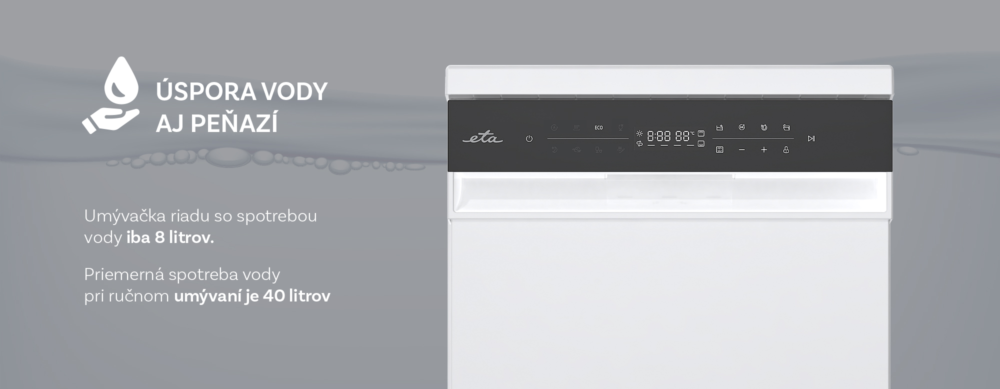 Zabudnite na zbytočné plytvanie. Umývačka ETA 3382 spotrebuje iba 8 litrov vody a vďaka energetickej triede B šetrí elektrinu aj vaše náklady. Funkcia zónového umývania vám navyše umožní spustiť cyklus iba pre časť umývačky, keď nie je úplne naplnená.