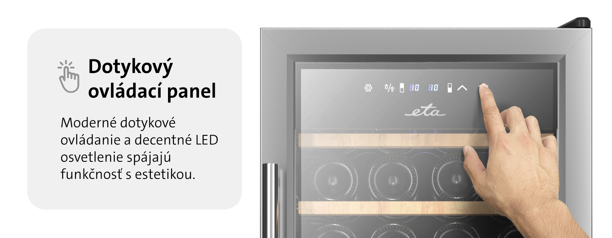 Dotykový ovládací panel s prehľadným LED displejom umožňuje nastaviť teplotu v každej zóne zvlášť, a to od 5 do 18 °C. Vnútorné usporiadanie tvoria drevené police, ktoré vyzerajú skvele a pomáhajú bezpečne uchytiť fľaše.