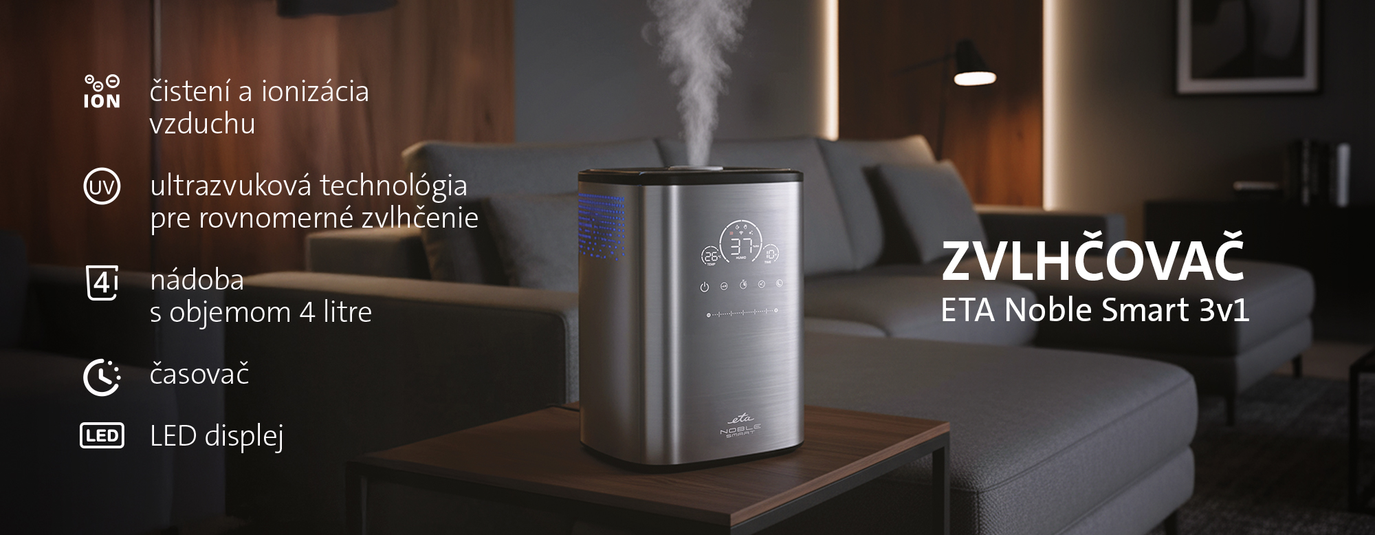 Spoločnosť ETA svojim produktom dôveruje. Na zvlhčovač vzduchu ETA Noble Smart preto poskytuje predĺženú záruku na 3 roky na motor. Pre získanie záruky sa stačí bezplatne zaregistrovať TU.