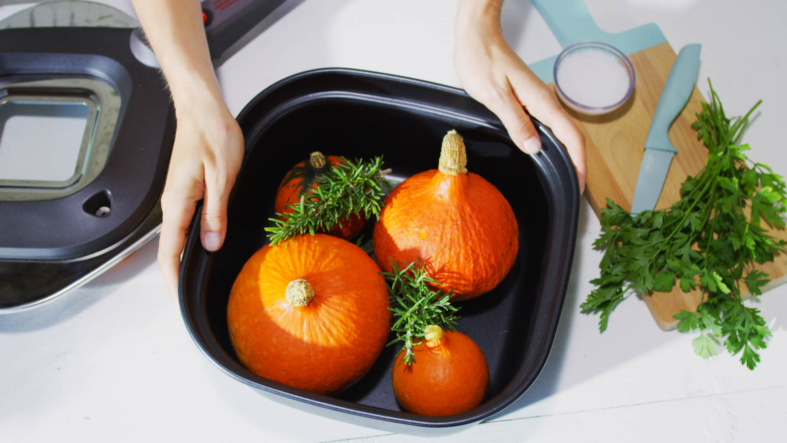 Upečené kúsky dýň môžete povariť a rozmixovať na polievku. ETA Vital Blend zvládne mixovať aj horké suroviny, len pozor na oparenie pri nalievaní. Pyré vmiešajte do cesta na chleba a upečte ho v pekárni ETA Duplica. Voňavý chrumkavý bochník prekvapí šťavnatosťou a oranžovým vzorom v reze.