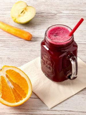 - Vyberte si recept na smoothie, všetko pridajte podľa chuti do sklenenej nádoby, zapnite mixér – a môžete podávať.