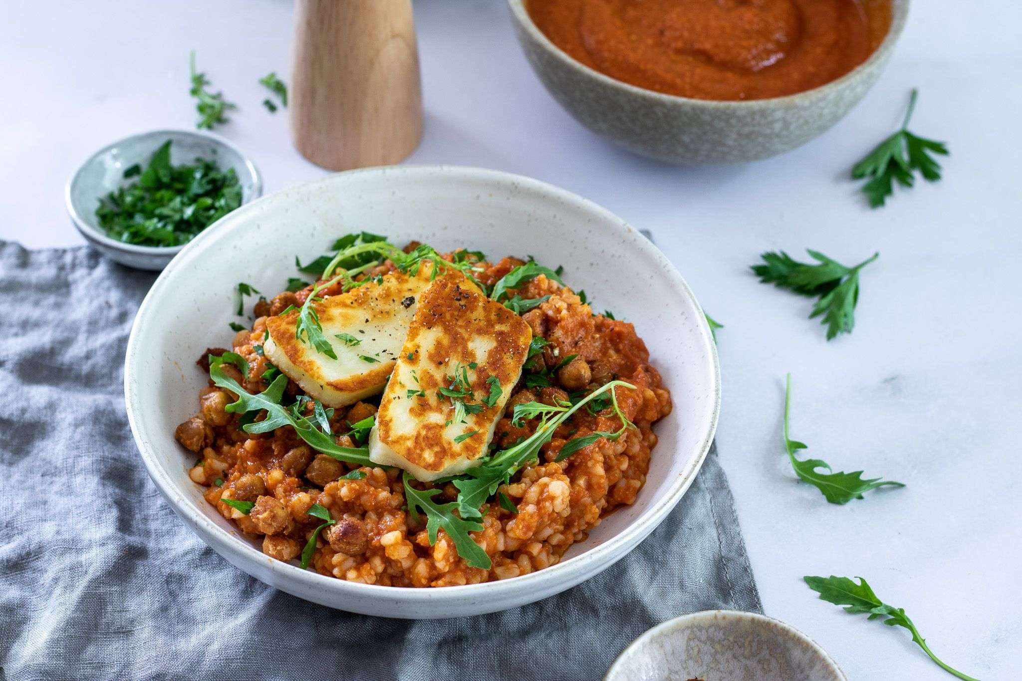 Bulgur s omáčkou romesco a halloumi
