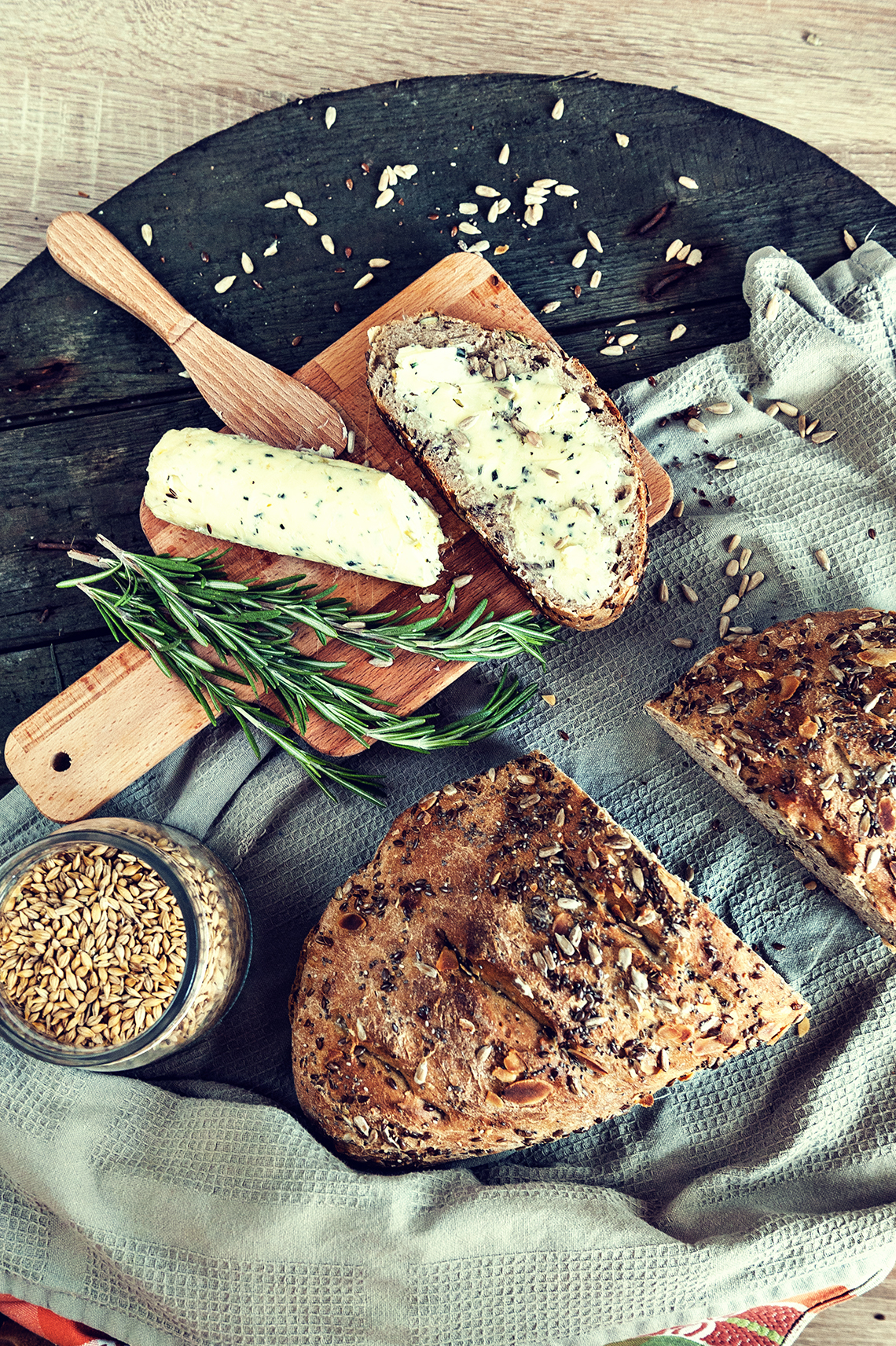 Celozrnný chlieb s bylinkovým maslom