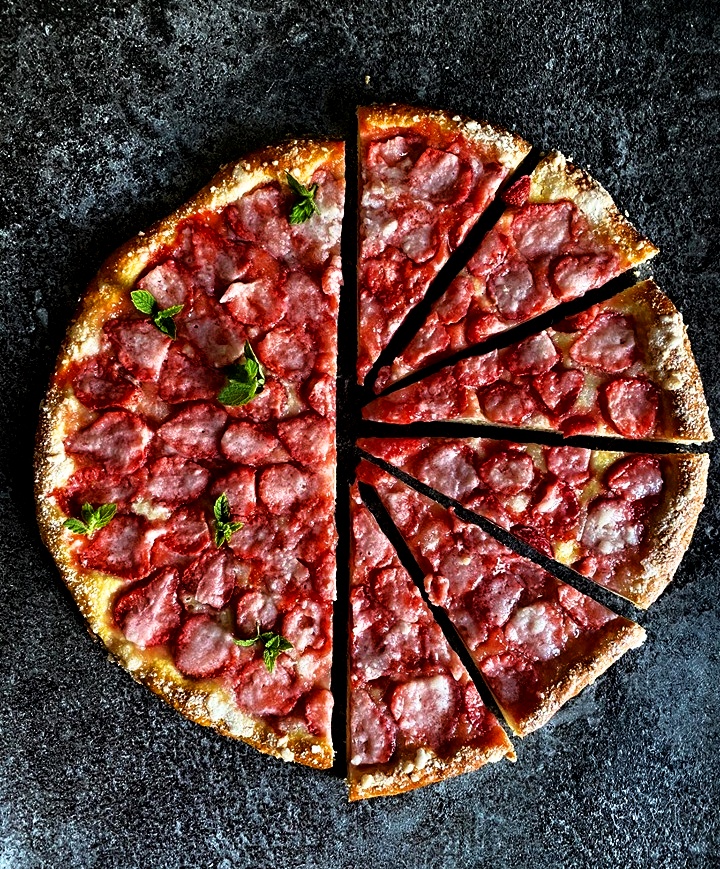 7. Po vykysnutí spracujte na hladkú štruktúru a rozvaľkajte do kruhu. Podľa vykysnutia môžete vyvaľkať aj koláče dva. Rozohrejte rúru na 170°C.