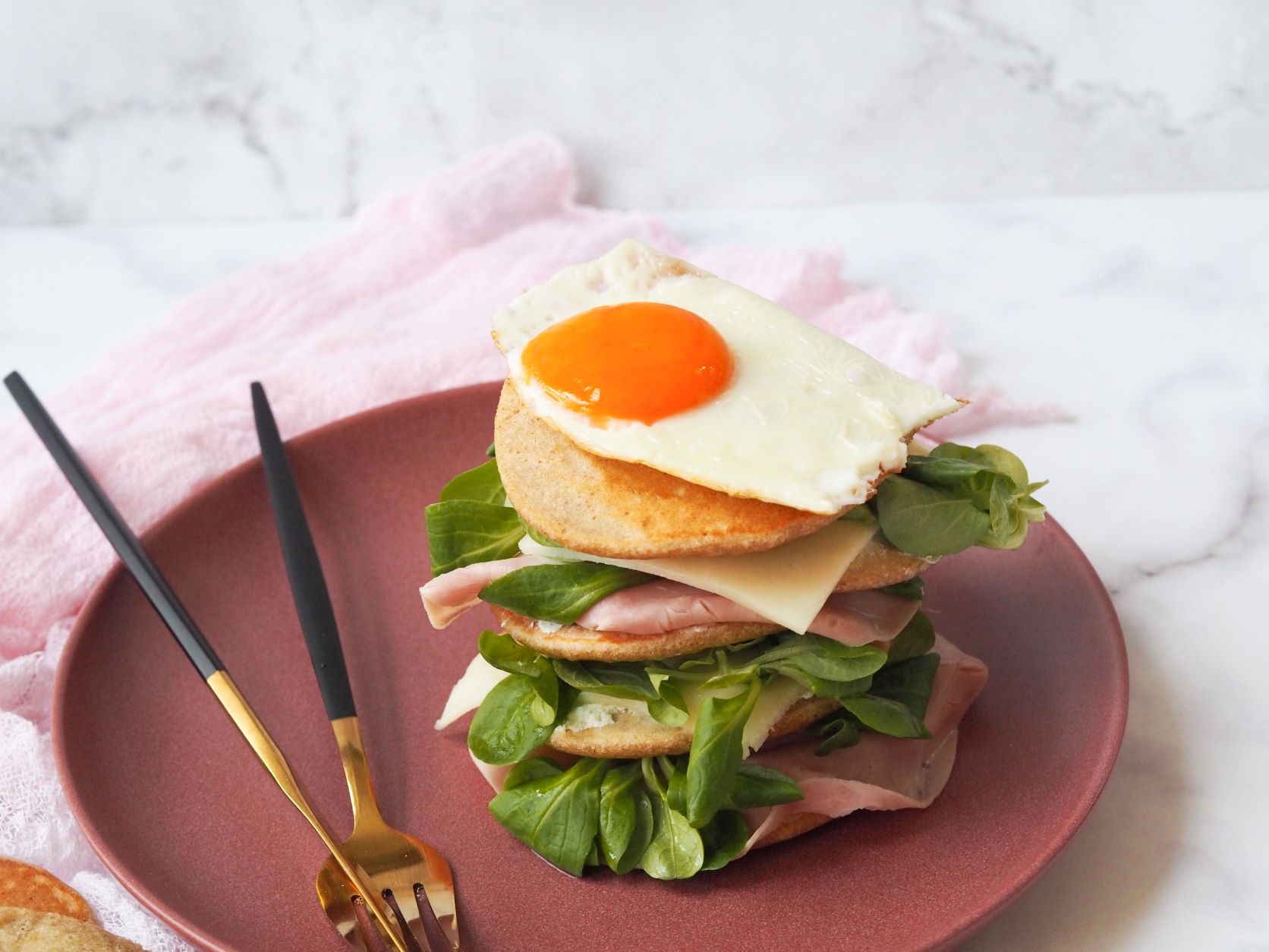 6. Servírujte. Ja som servírovala s lučinou, šunkou, syrom, špenátom a volským okom.