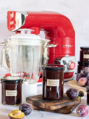 Slivky rozmixujte najemno a prelejte späť do hrnca. Prilejte ocot, zamiešajte a priveďte do varu. Lekvár môžete variť na vyššom stupni približne pol hodiny, dajte však pozor – akonáhle začne hustnúť, dosť prská. Po pol hodine stlmte na nízky stupeň, aby sa lekvár nepripálil, a varte ďalšie dve hodiny do zhustnutia.