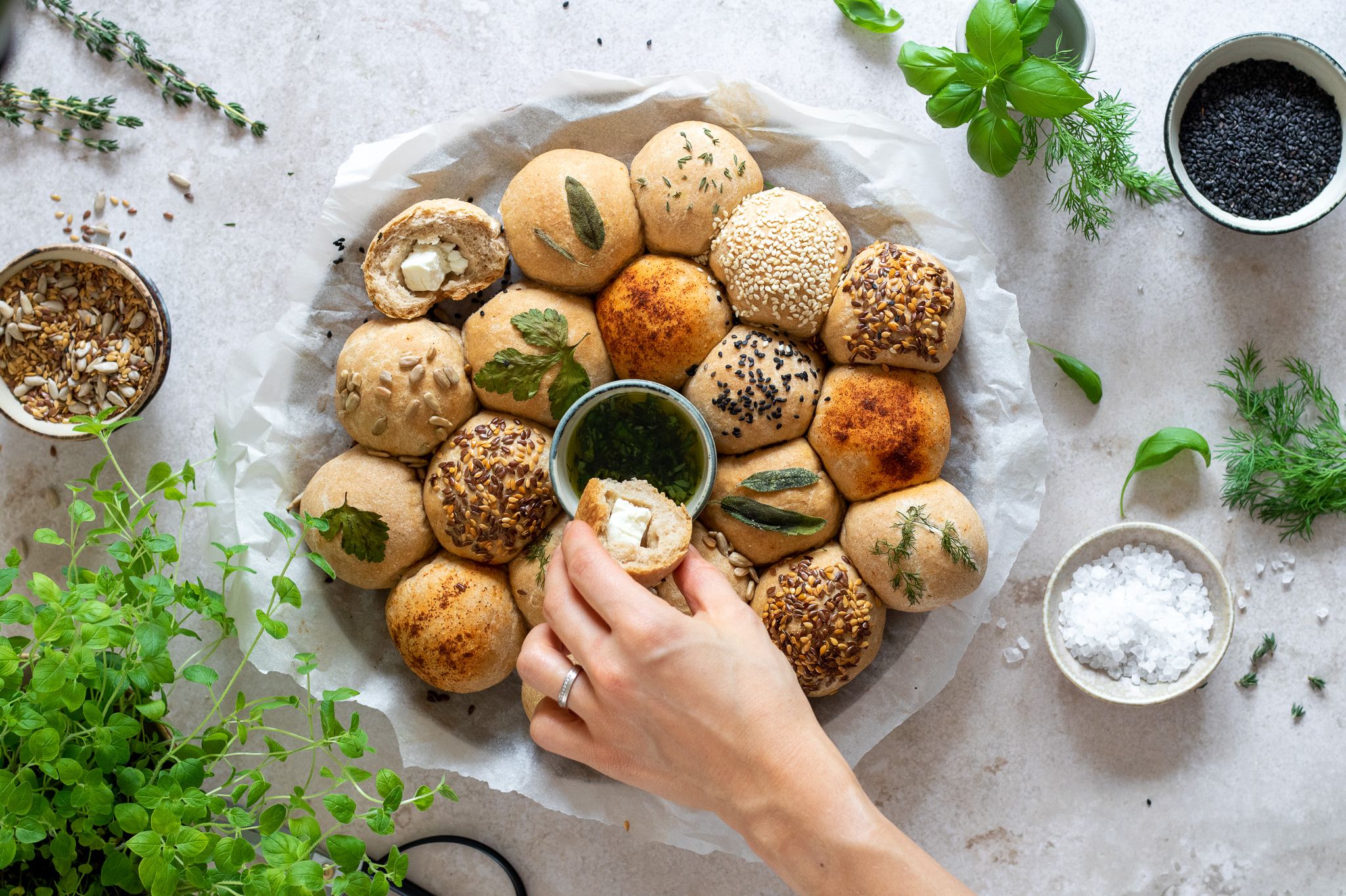 Syrové bochníky à la bubble bread s bylinkami a semienkami