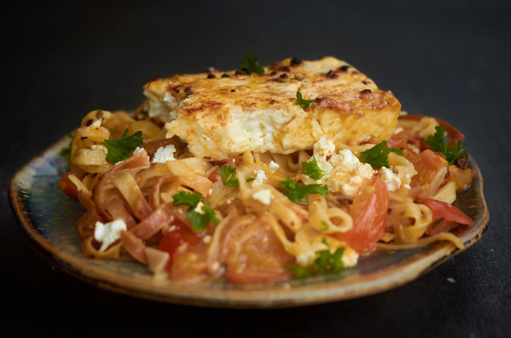 Tagliatelle zapečené s rajčinami a feta syrom